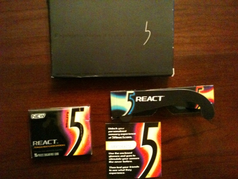 My black envelope (more like a small black box) arrived a week later and it contained the 5 React gum sample as well as my unique access code & a pair of 3D glasses.