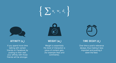 The process to determine what you see in your newsfeed is managed by Facebook’s Edge Rank. This is the algorithm that Facebook uses to display content from your network that it deems you would find the most engaging.